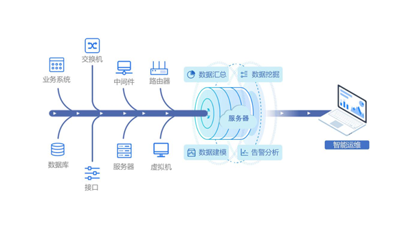 智能運維管理平臺能夠幫助運維人員管理機房,可以對機房內(nèi)的軟件系統(tǒng)和硬件設(shè)備實現(xiàn)自動化監(jiān)控,并定期生成機房的巡檢報告,幫助運維人員掌控機房的整體情況;監(jiān)控對象包括業(yè)務(wù)軟件系統(tǒng)、中間件、數(shù)據(jù)庫、服務(wù)器、網(wǎng)絡(luò)設(shè)備等,通過自動化監(jiān)控實現(xiàn)故障預(yù)警、定位,降低故障發(fā)生率,減少因故障造成的損失。