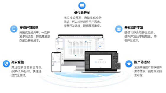 輕騎兵低代碼開發(fā)平臺(Hussar LCDP)是金現(xiàn)代公司研發(fā)十余年的開發(fā)平臺產品,使用平臺可無需編碼或少量編碼,通過拖拉拽和簡單配置的方式就能快速生成軟件系統(tǒng)。該平臺具有可視化低代碼開發(fā)、開發(fā)組件豐富、高安全性等特性,全面適配國產化環(huán)境。采用輕騎兵低代碼開發(fā)平臺可大大提升軟件系統(tǒng)開發(fā)速度和質量,降低對軟件開發(fā)人員的要求和開發(fā)成本。