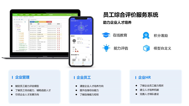 員工綜合評(píng)價(jià)服務(wù)系統(tǒng)能夠幫助管理者直觀了解員工綜合素質(zhì)能力,可依據(jù)崗位需求定制不同的人才模型,自動(dòng)分析計(jì)算,輔助人才選拔,解決人才選拔缺標(biāo)準(zhǔn)、無依據(jù)的問題。同時(shí),系統(tǒng)可根據(jù)企業(yè)的人才需求為員工提供提升渠道,指引員工發(fā)展方向,提供在線視頻培訓(xùn)、任務(wù)引導(dǎo)等豐富的學(xué)習(xí)途徑,是企業(yè)培養(yǎng)和選拔人才的好幫手。