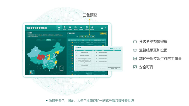干部監(jiān)督預(yù)警系統(tǒng)是一款基于大數(shù)據(jù)思維的干部管理產(chǎn)品。該產(chǎn)品能夠靈活配置領(lǐng)導(dǎo)干部的監(jiān)督事項(xiàng)與預(yù)警規(guī)則,快速構(gòu)建干部監(jiān)督評(píng)價(jià)模型,幫助政企單位進(jìn)行干部選任、干部履職、日常工作、干部要事、輿情等業(yè)務(wù)的工作監(jiān)督,發(fā)現(xiàn)問題事項(xiàng)后可以根據(jù)嚴(yán)重程度進(jìn)行“紅黃藍(lán)”三色預(yù)警提醒,通過顏色來識(shí)別干部“健康度”。該產(chǎn)品將海量干部監(jiān)督數(shù)據(jù)進(jìn)行整合分析,大大減輕人工監(jiān)督工作量大、查閱工作繁瑣等痛點(diǎn)問題;前移干部監(jiān)督關(guān)口,及時(shí)發(fā)現(xiàn)苗頭性和傾向性的問題,輔助進(jìn)行干部調(diào)整、班子建設(shè)等工作。