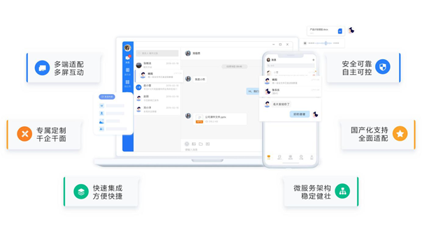 快速集成,方便快捷:提供即時(shí)通訊SDK,可將即時(shí)通訊快速集成到業(yè)務(wù)系統(tǒng)中;