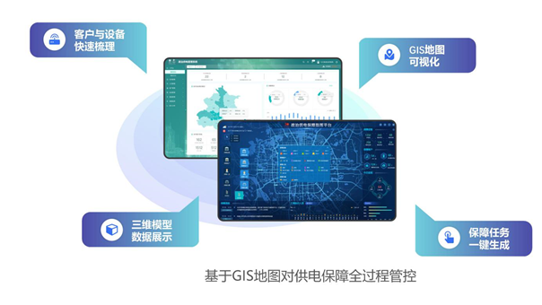 GIS地圖可視化:直觀展示保電設(shè)備、保障客戶、專業(yè)人員、工單數(shù)量、保障流線等信息,實現(xiàn)保障任務(wù)精確化,便于指揮調(diào)度;