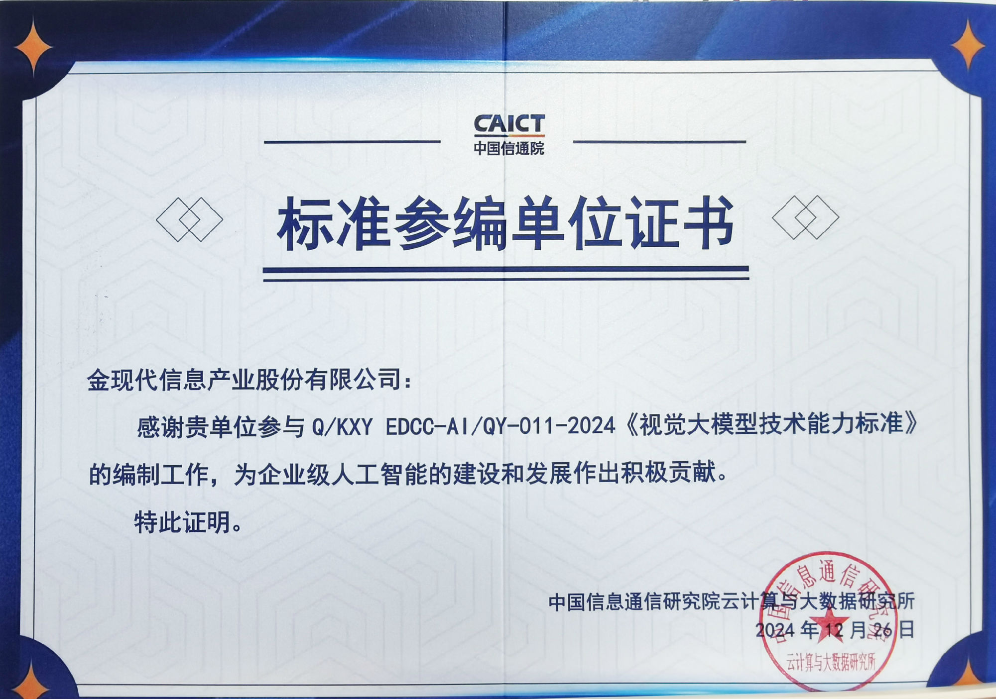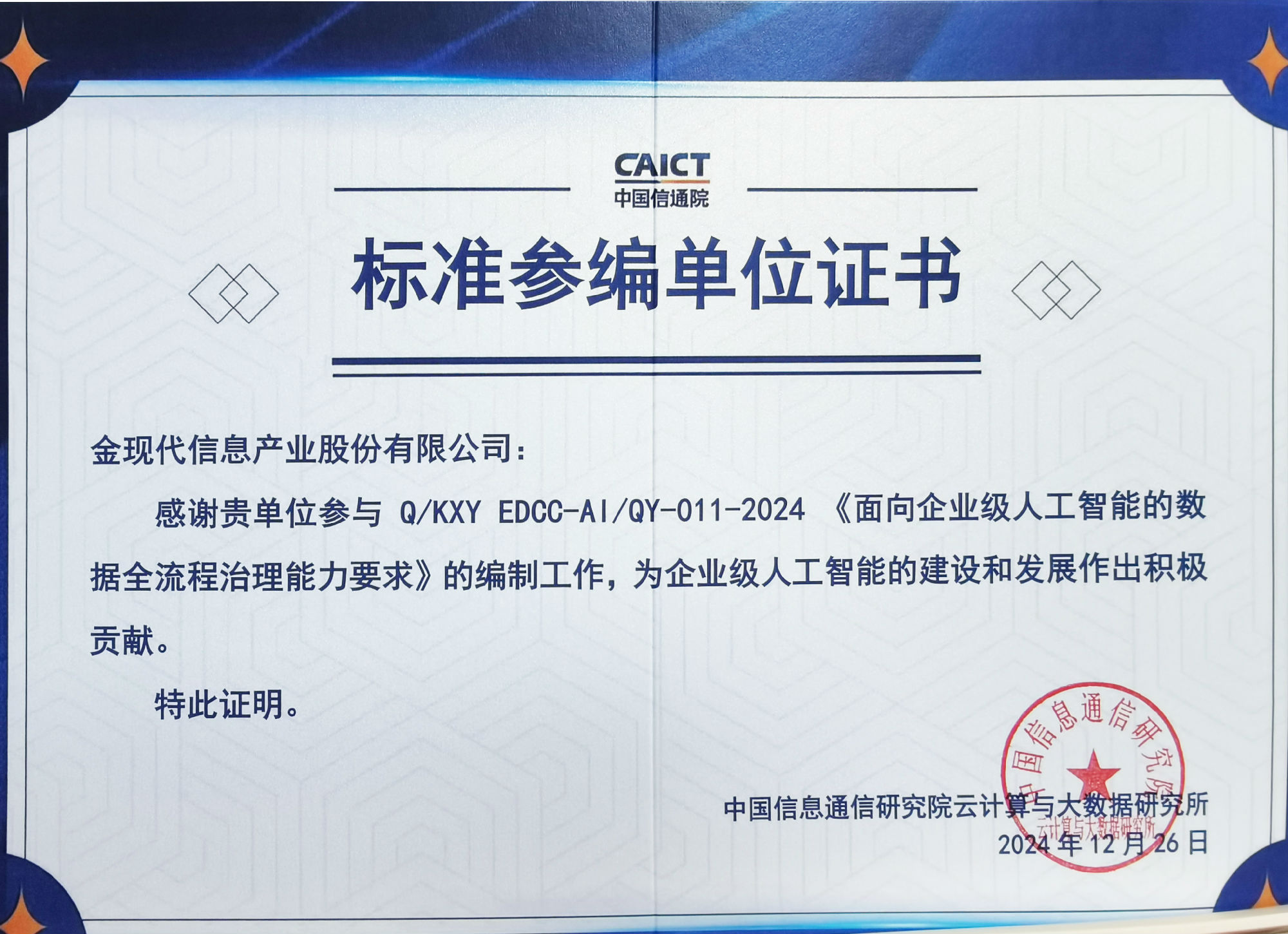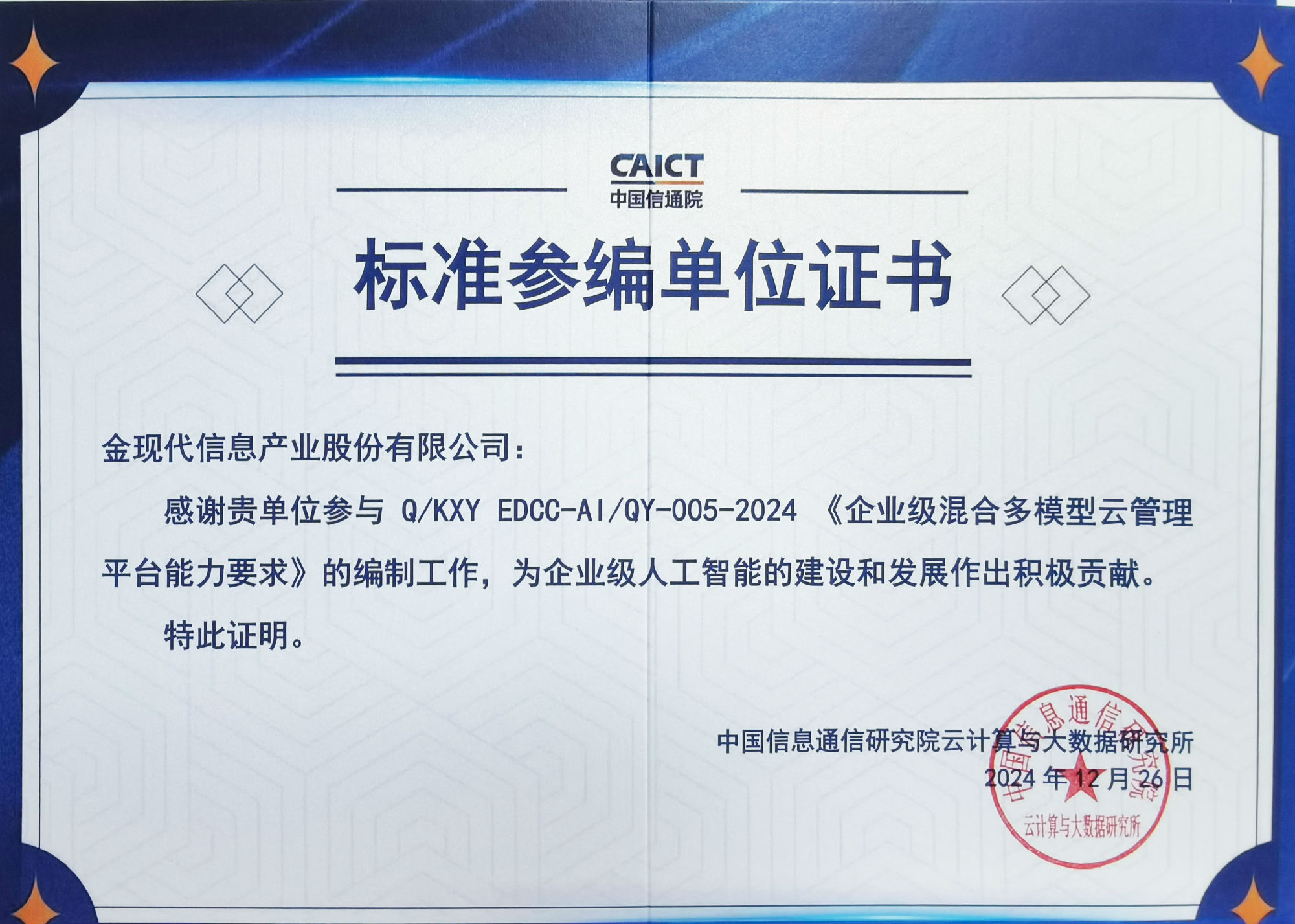 金現(xiàn)代參編中國信通院6項大模型標(biāo)準(zhǔn),推動企業(yè)級AI應(yīng)用落地