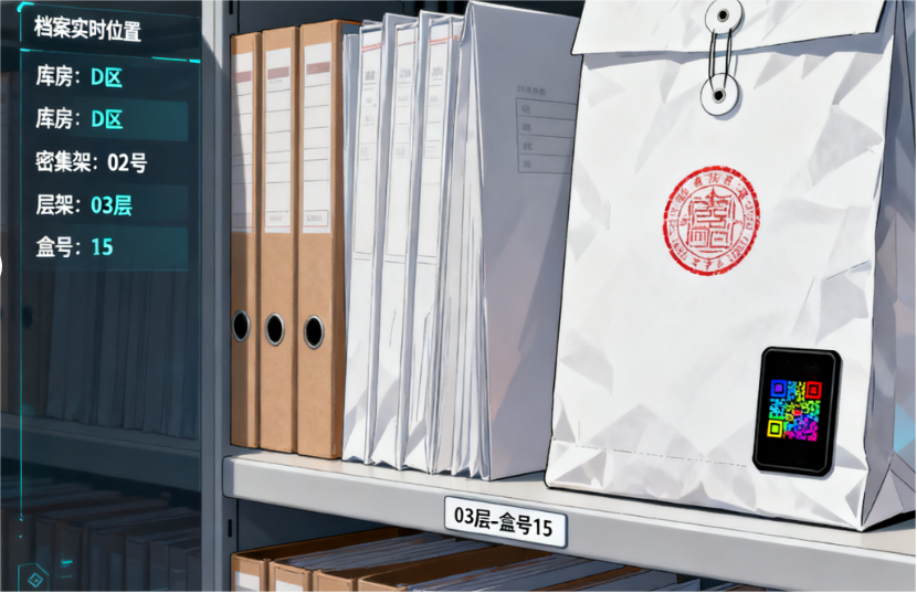每一份實(shí)體檔案都被賦予唯一的數(shù)字身份。通過(guò)二維碼將檔案袋與數(shù)字化副本精準(zhǔn)綁定。用戶可一鍵定位檔案所在庫(kù)房、密集架乃至具體盒號(hào),全程追蹤出入庫(kù)、盤(pán)點(diǎn)、移交軌跡,徹底告別“查得到電子版,找不到紙質(zhì)件”的困境。