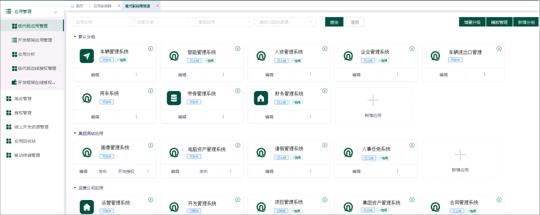 (低代碼應(yīng)用管理示意)